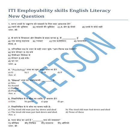 Employability Skills English Literacy MCQ in Hindi ITI | PDF