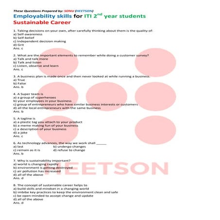 Based on this image's title: “ITI Employability Skills Questions and Answers | PDF”