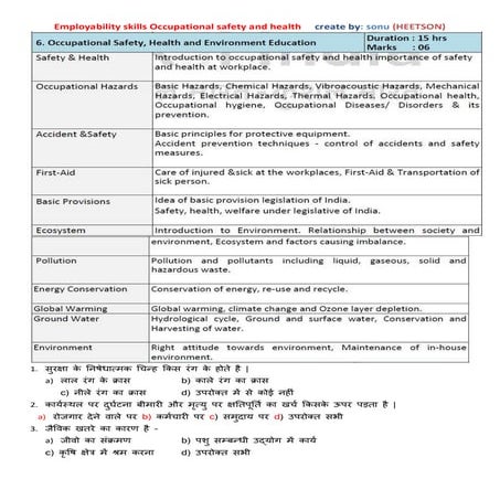 Employability Skills ITI Occupational Safety, Health and Environment ...