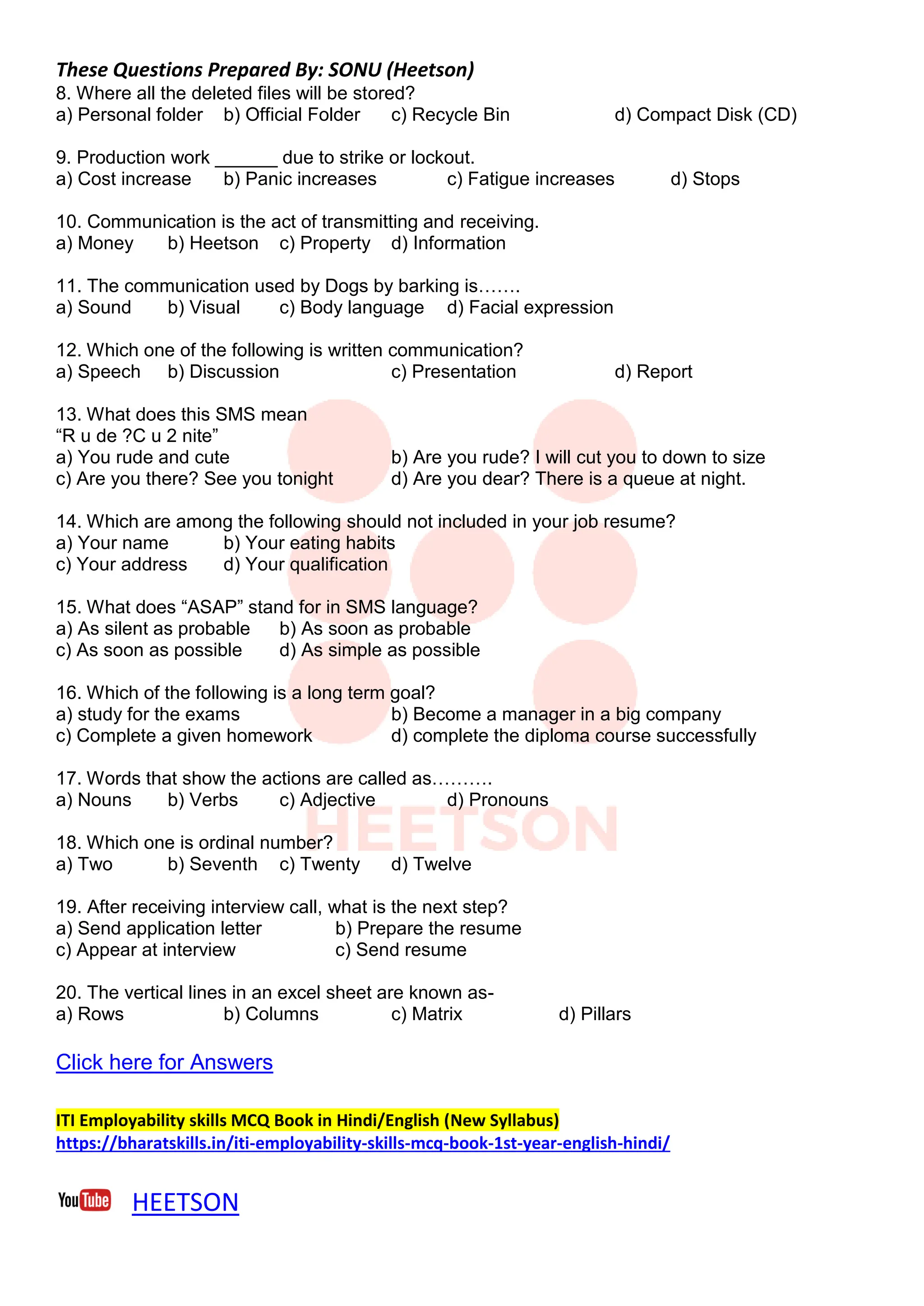 Employability skills questions and answers most important MCQ for ITI ...