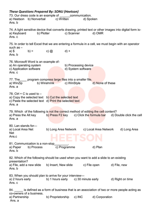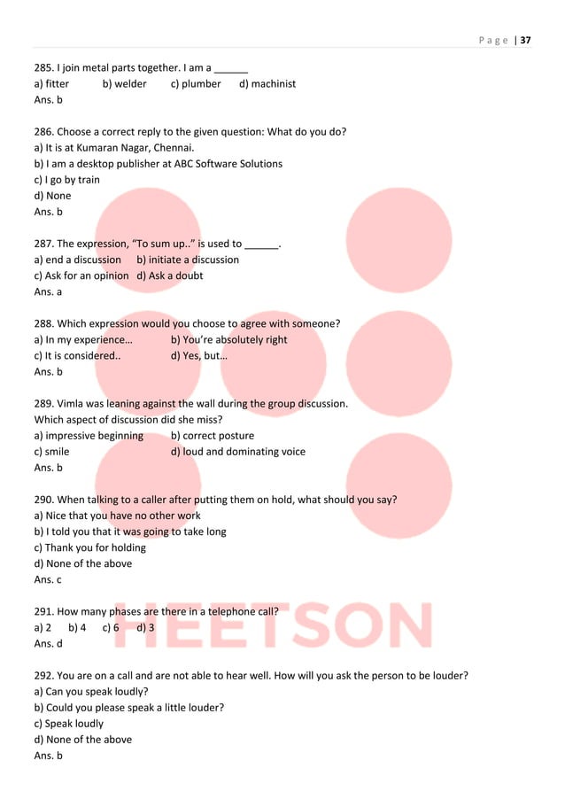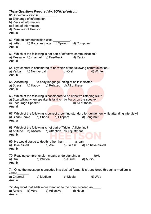 Communication Skills MCQs with Answers | PDF | Communication | Comma