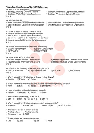 Employability Skills IT Literacy MCQ for ITI 2nd Year | PDF