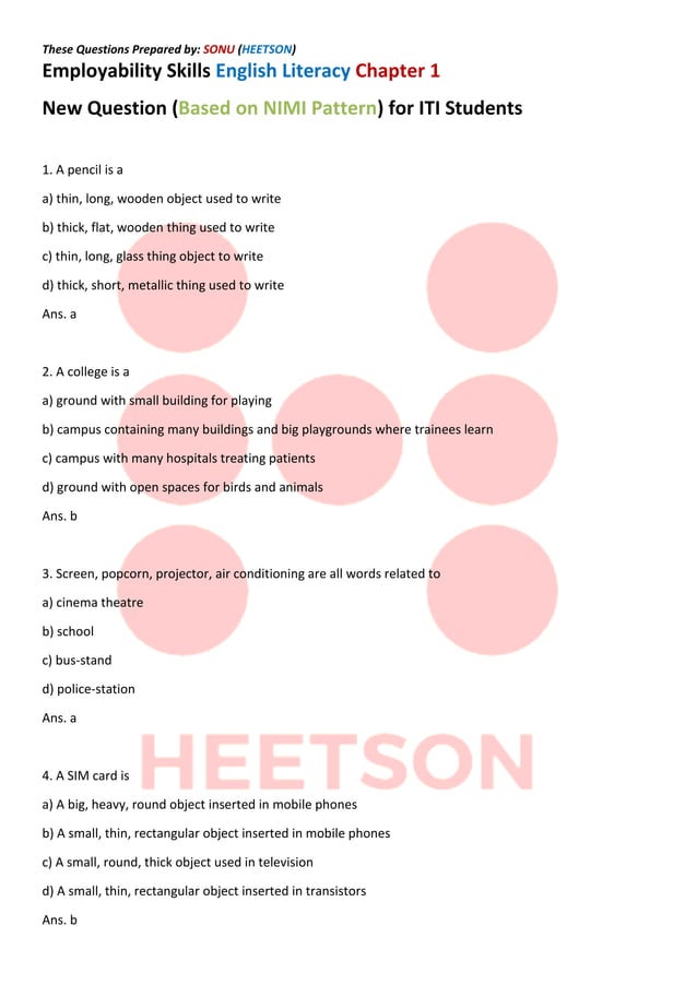 [PDF] ITI Employability Skills Questions and Answers 2023 PDF
