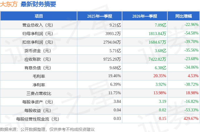 大东方(600327)2026年一季报简析:净利润同比下降54.58%_腾讯新闻