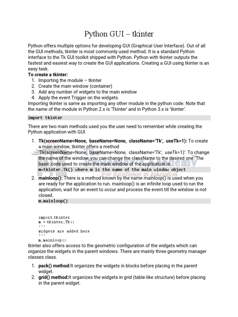 Python GUI - Tkinter: To Create A Tkinter | PDF | Graphical User ...