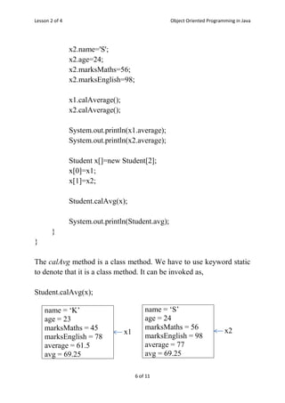 JAVA 7: Methods and Classes Overview and Concepts - Studocu