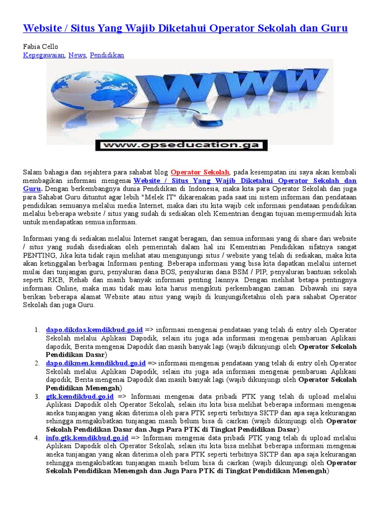 Situs Yang Wajib Diketahui Operator Sekolah Dan Guru | PDF