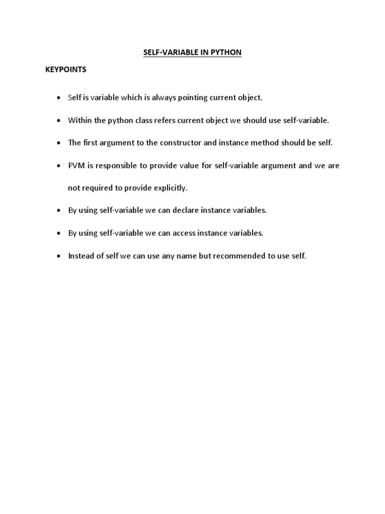 NOTES Self Variable Keypoints in Python PDF | PDF | Computers