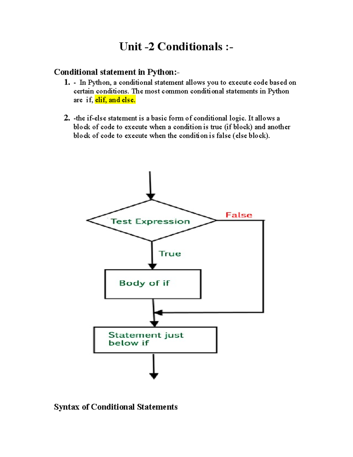 Unit2 python - Unit -2 Conditionals :- Conditional statement in Python ...