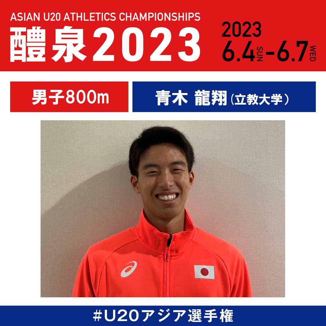 日本陸上競技連盟 on Twitter: "/ 【#U20アジア選手権】 \ 6月5日(月)DAY2️⃣ 男子800m 金メダル🥇 #立迫大徳 ...