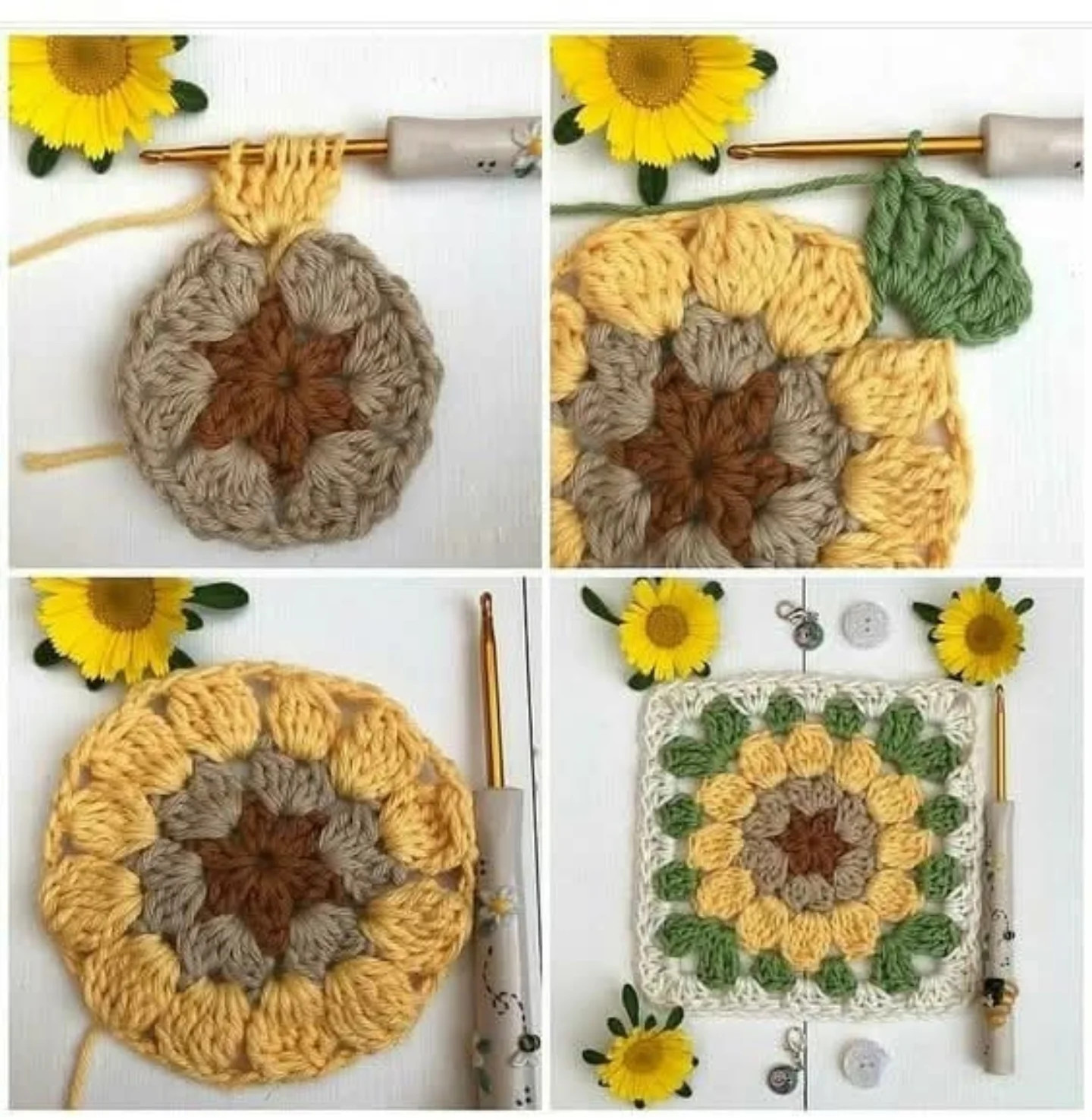 Tutorial de gorro de crochet con diseño de girasol, colores amarillo y ...