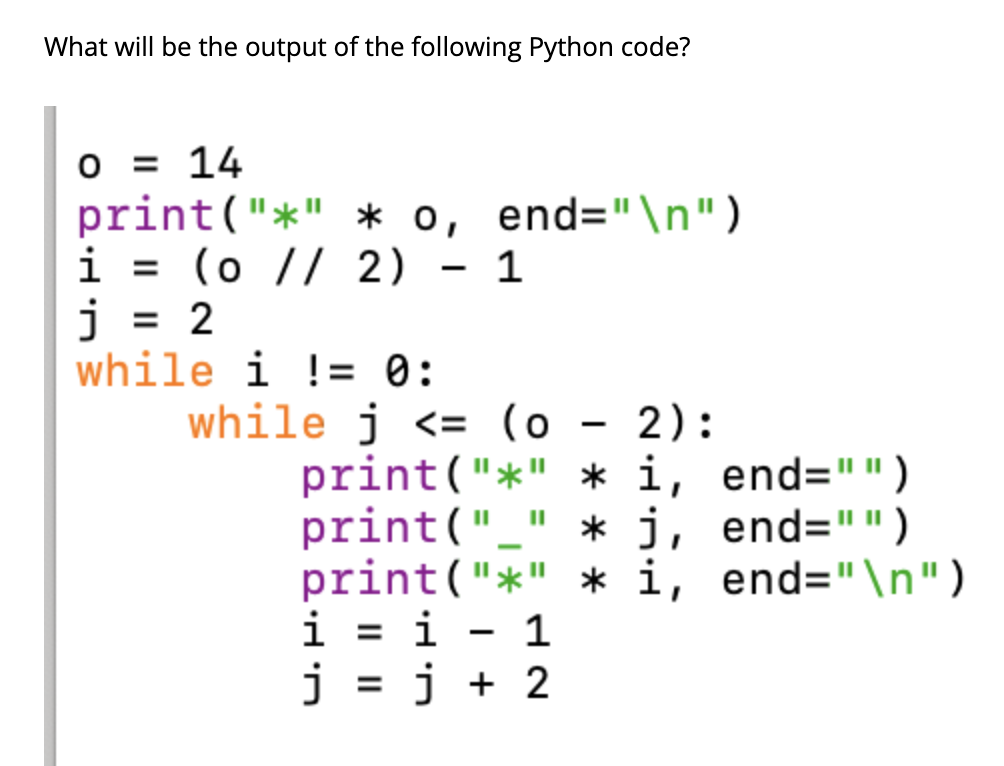 π£πππ΅πΌπ» π€ππ²πππΆπΌπ» / π€ππΆπ; What is the output of the following Python code ...