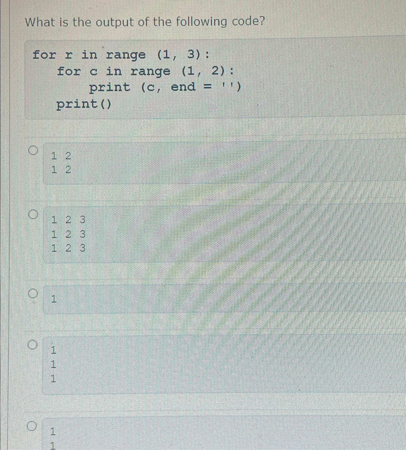 Solved Question 2 What is the output of the following code? | Chegg.com