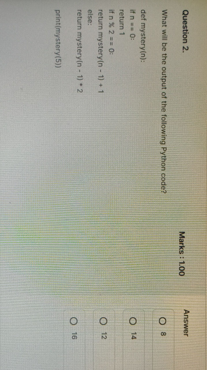 Solved QUESTION 6 What is the output of the following Python | Chegg.com