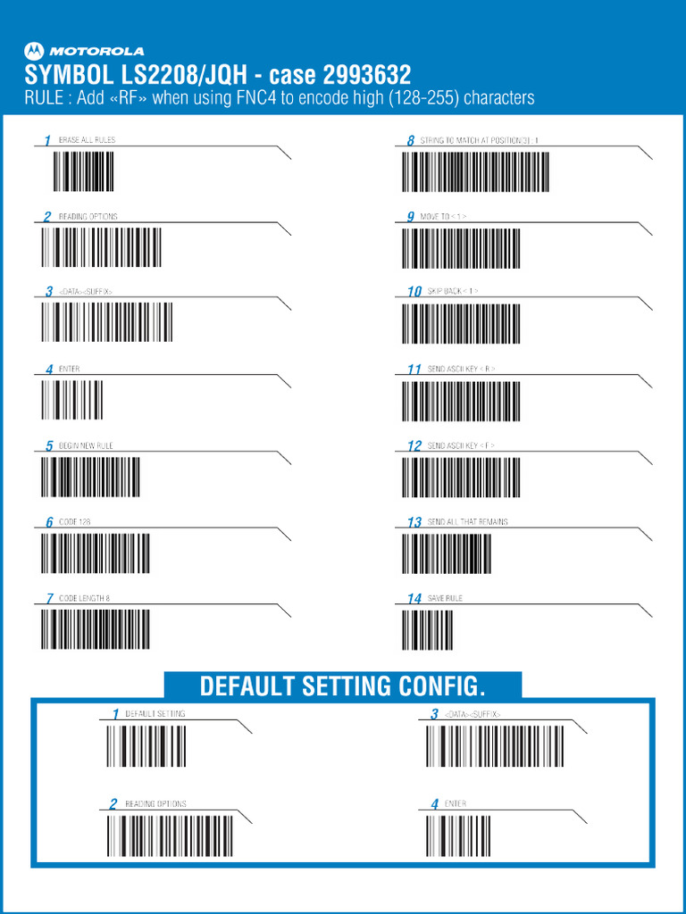 Printable Symbol Barcode Scanner Programming Sheet
