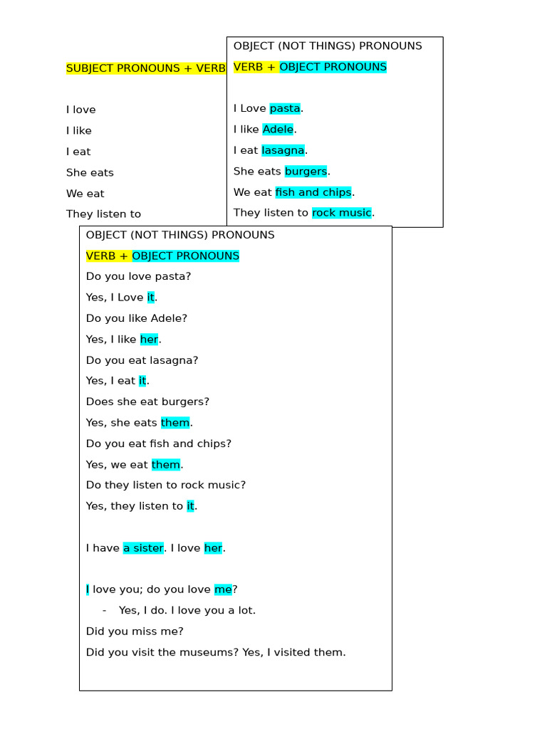 Subject and object pronouns – Artofit