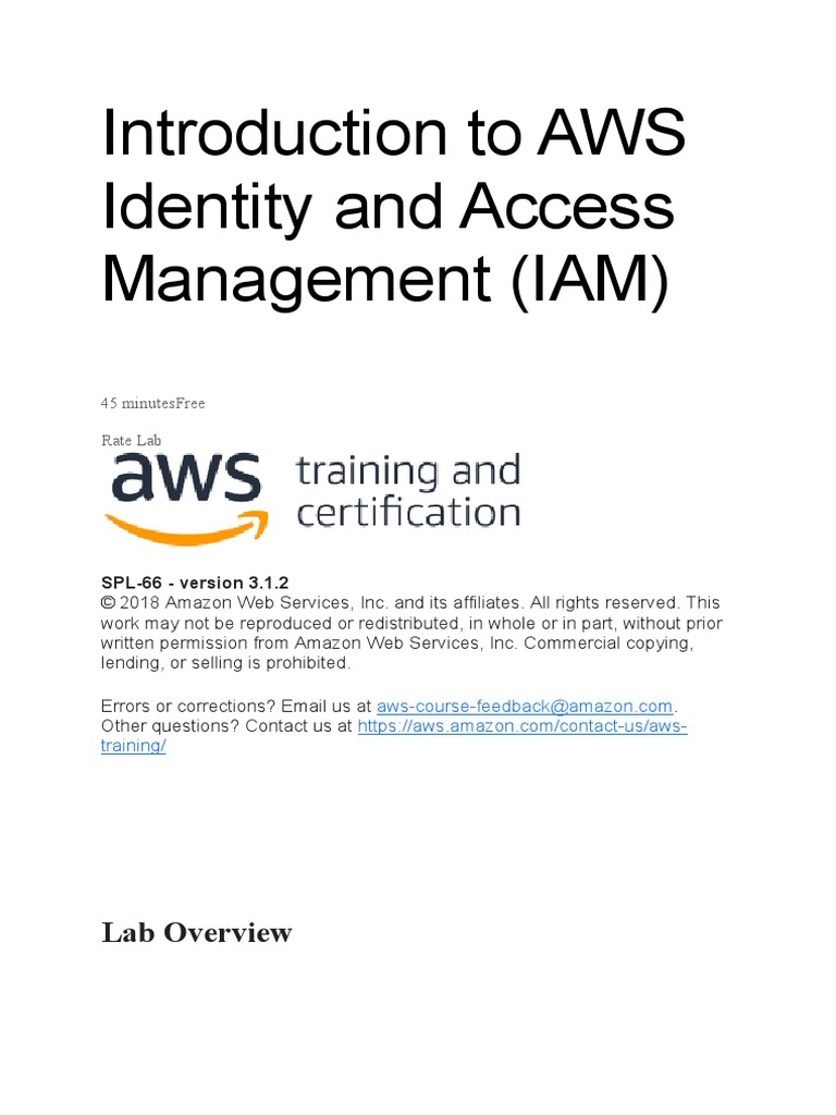 P11 Introduction to AWS IAM 1 .pdf - Lab 1: Introduction to AWS IAM AWS ...