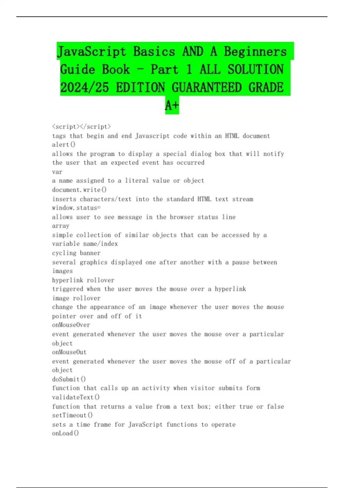JavaScript Basics AND A Beginners Guide Book - Part 1 ALL SOLUTION 2024 ...