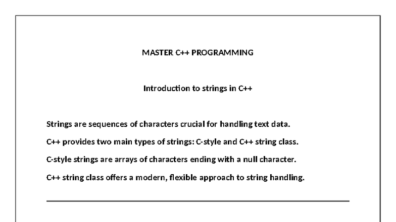C++ MASTER PROGRAMMING: Introduction to Strings and Their Handling ...