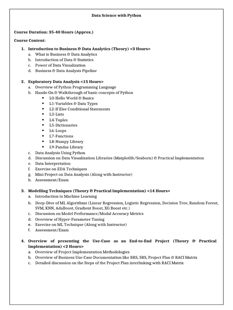 Data Science With Python Course Syllabus - BBA | PDF | Data Analysis ...