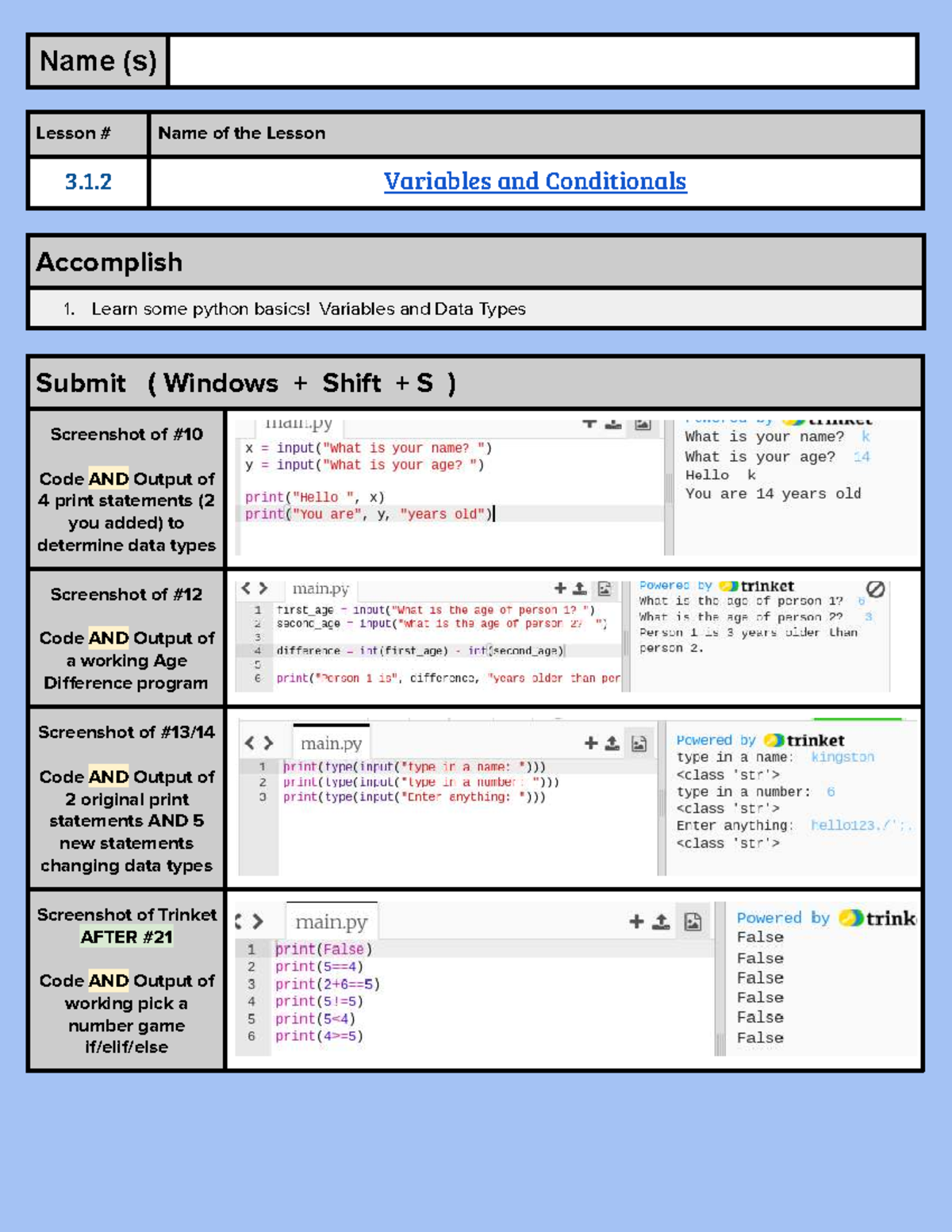 3.1.2 Lesson: Python Basics - Variables & Conditionals Submission - Studocu