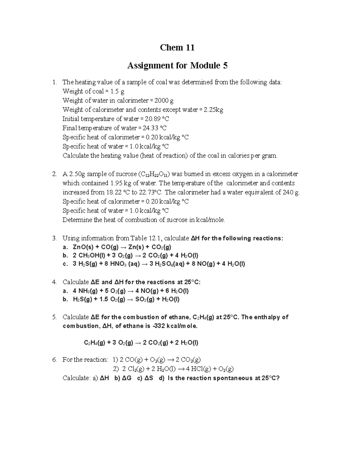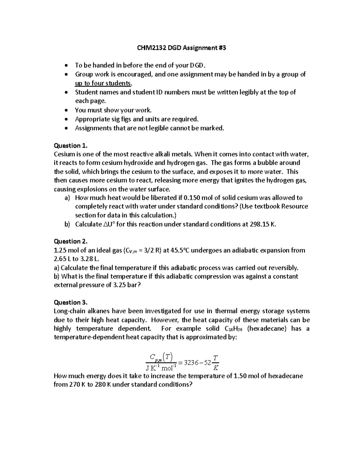 CHM2132 DGD Assignment 3: Heat Reactions & Gas Expansion - Studocu