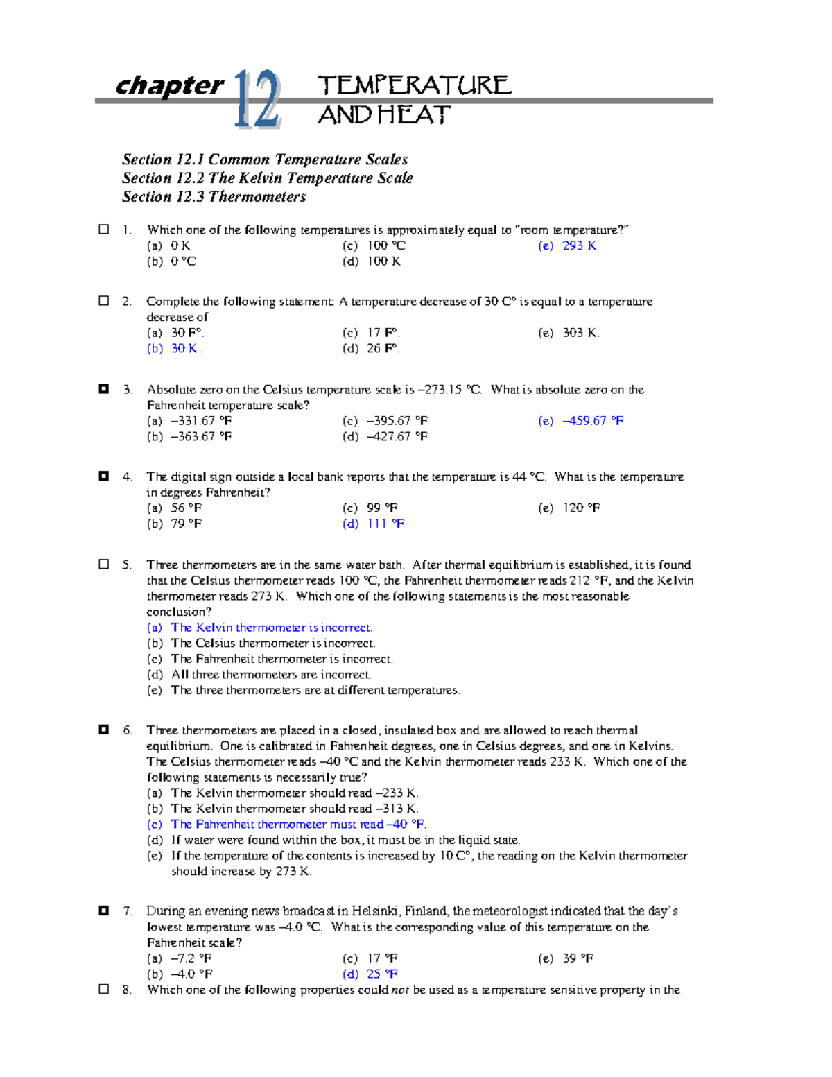 01. Temperature and Heat - TEMPERATURE AND HEAT chapter Section 12 ...
