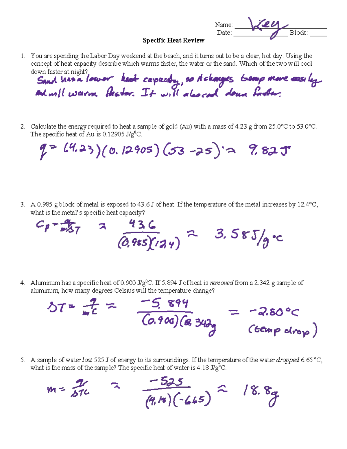 Extra practice- calculating specific heat worksheet answers - Studocu