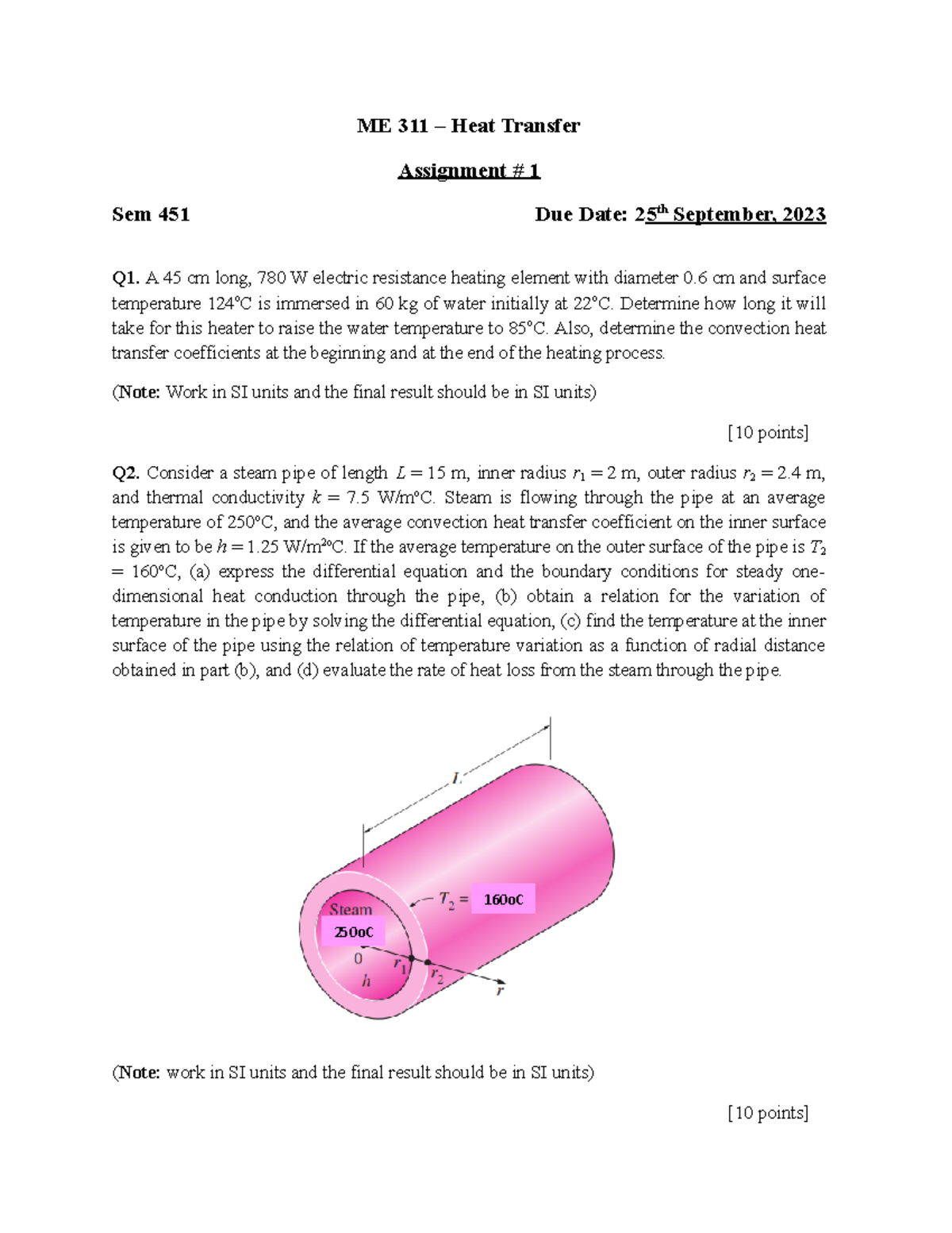 Heat Transfer Assignment - Mechanical Engineering - NVSU - Studocu