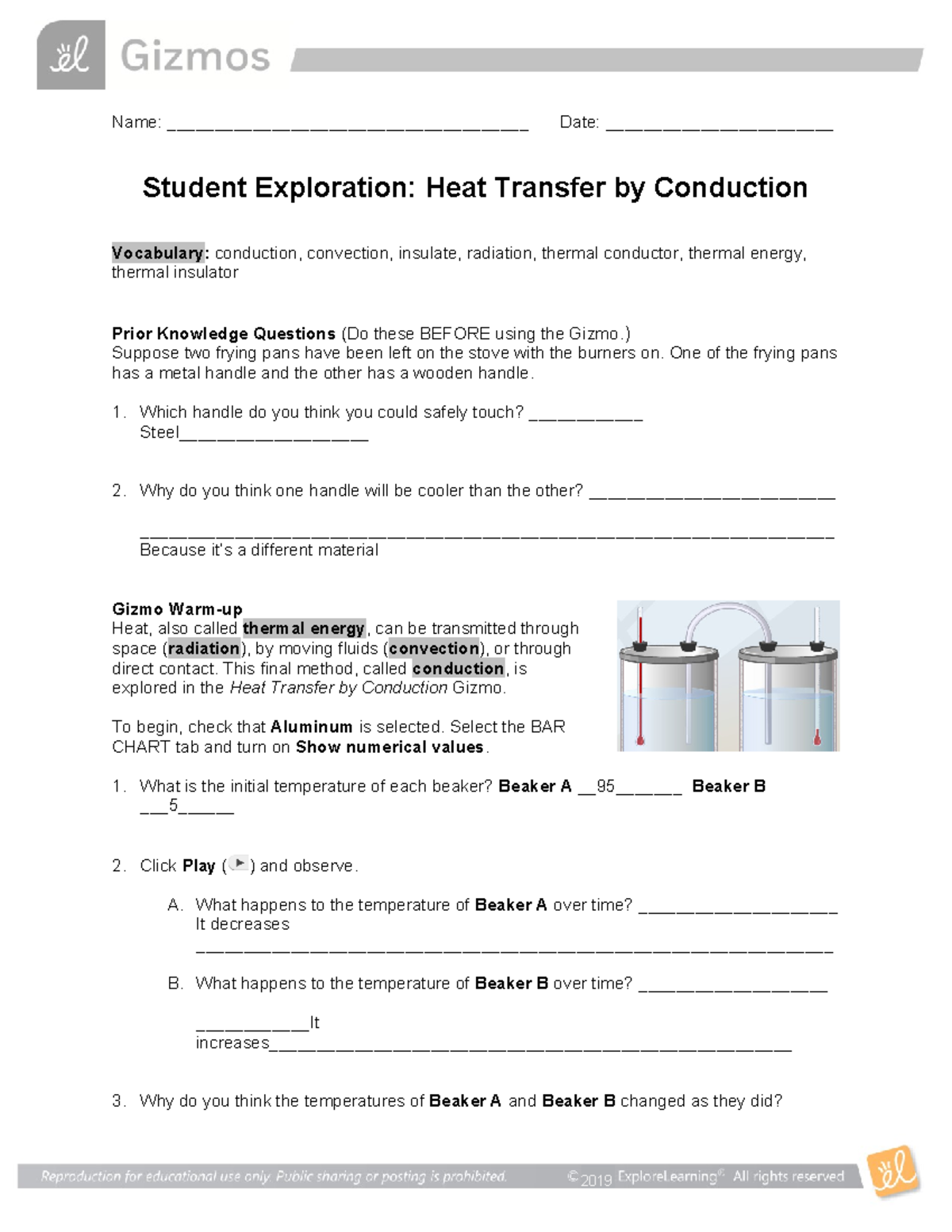 Physics Worksheet Work and Energy (2) - Thermal Energy Flow PhET Lab ...