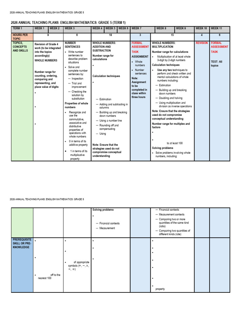 2026 GRADE 5 MATHEMATICS ANNUAL TEACHING PLANS (ATP) - Studocu