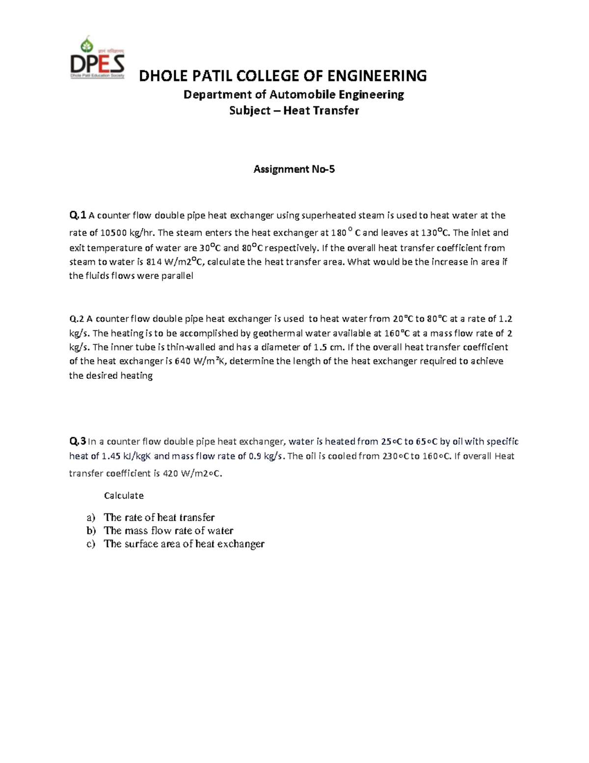 HT Assignment 5: Counter Flow Double Pipe Heat Exchanger Analysis - Studocu