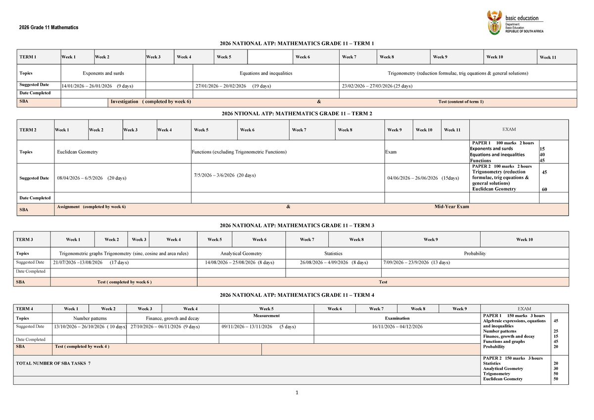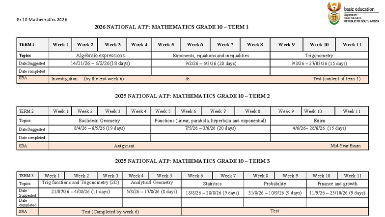 Gr 10 Mathematics 2026: National ATP Overview and Term Breakdown - Studocu
