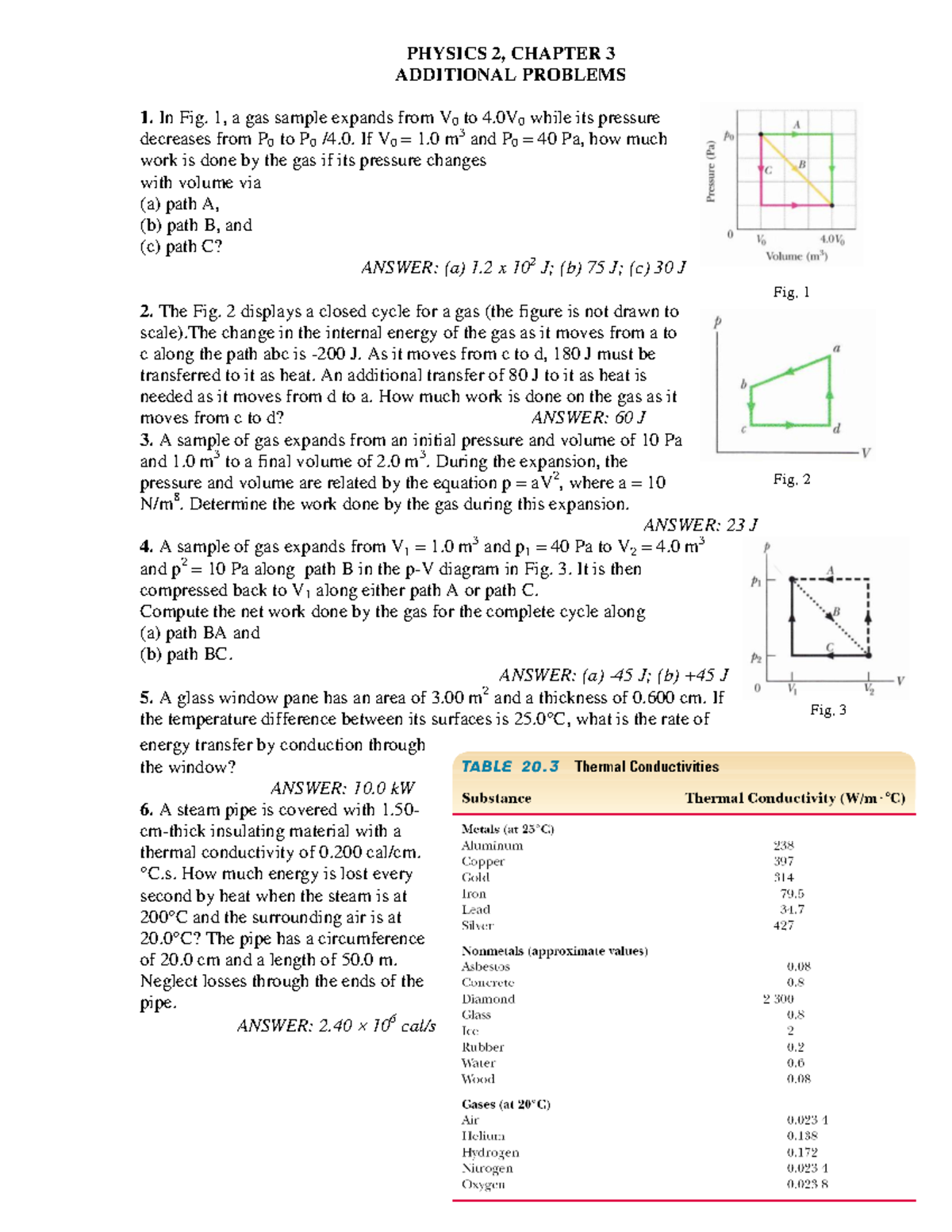 Exercises Phys 2Ch3-Heat Work Law 1 - PHYSICS 2, CHAPTER 3 ADDITIONAL ...