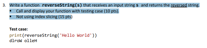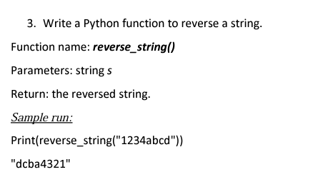 Solved 3. Write a Python function to reverse a string. | Chegg.com
