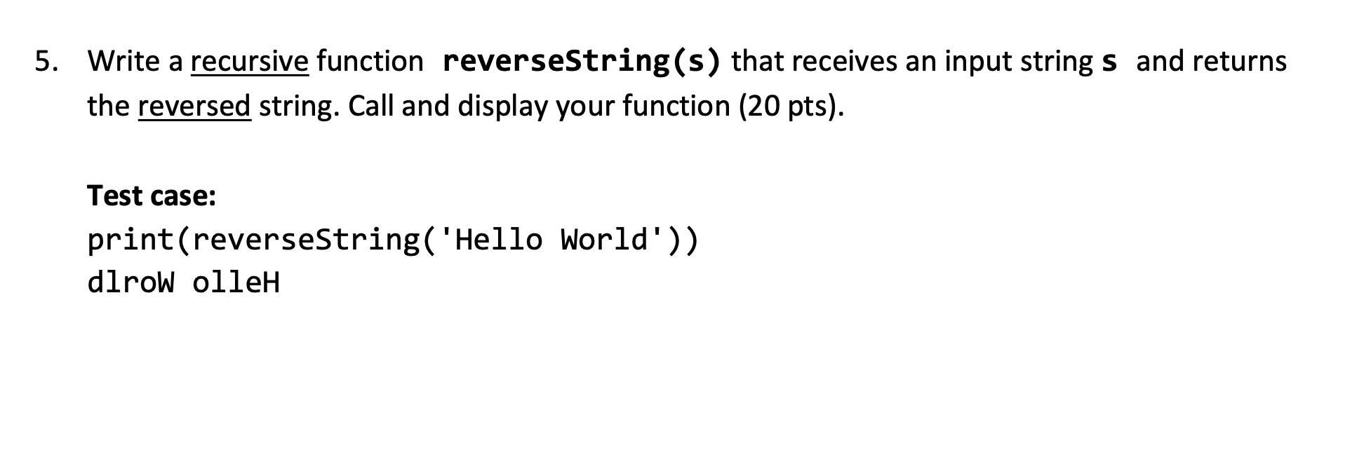 Solved 5. Write a recursive function reverseString(s) that | Chegg.com
