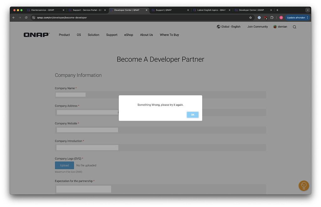 Problem signing up for the Developer program - English - QNAP Community