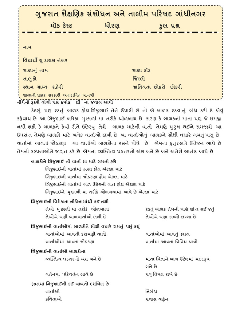 STD 6 Mock Test - 2 - Gujarati Medium | PDF