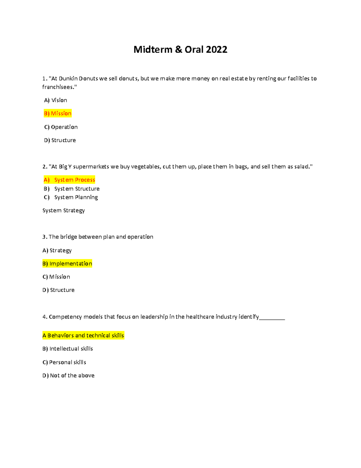 Midterm-Oral Stratigic Planning 2022 - Midterm & Oral 2022 "At Dunkin ...