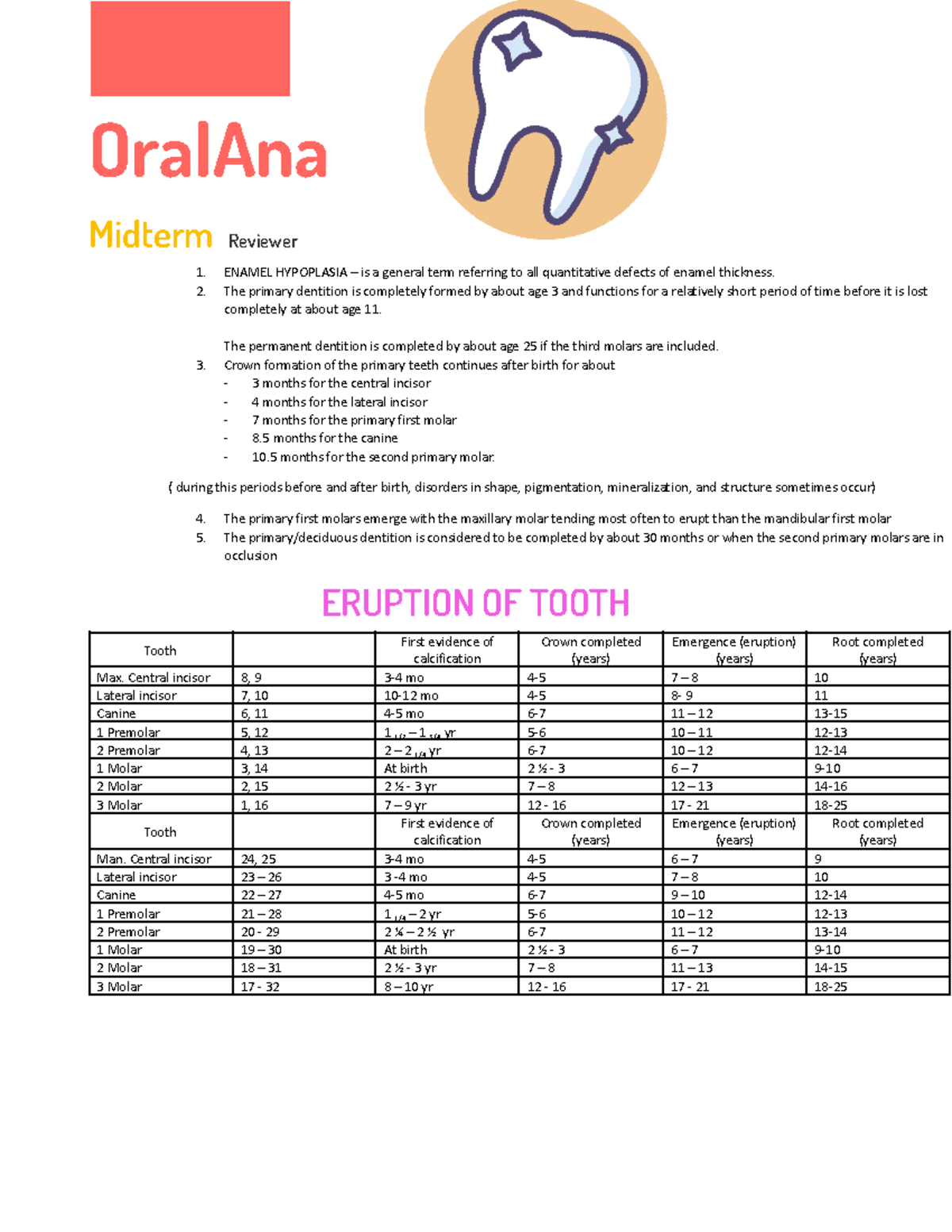 Oral Mid - oral anatomy midterm reviewer - OralAna Midterm Reviewer ...