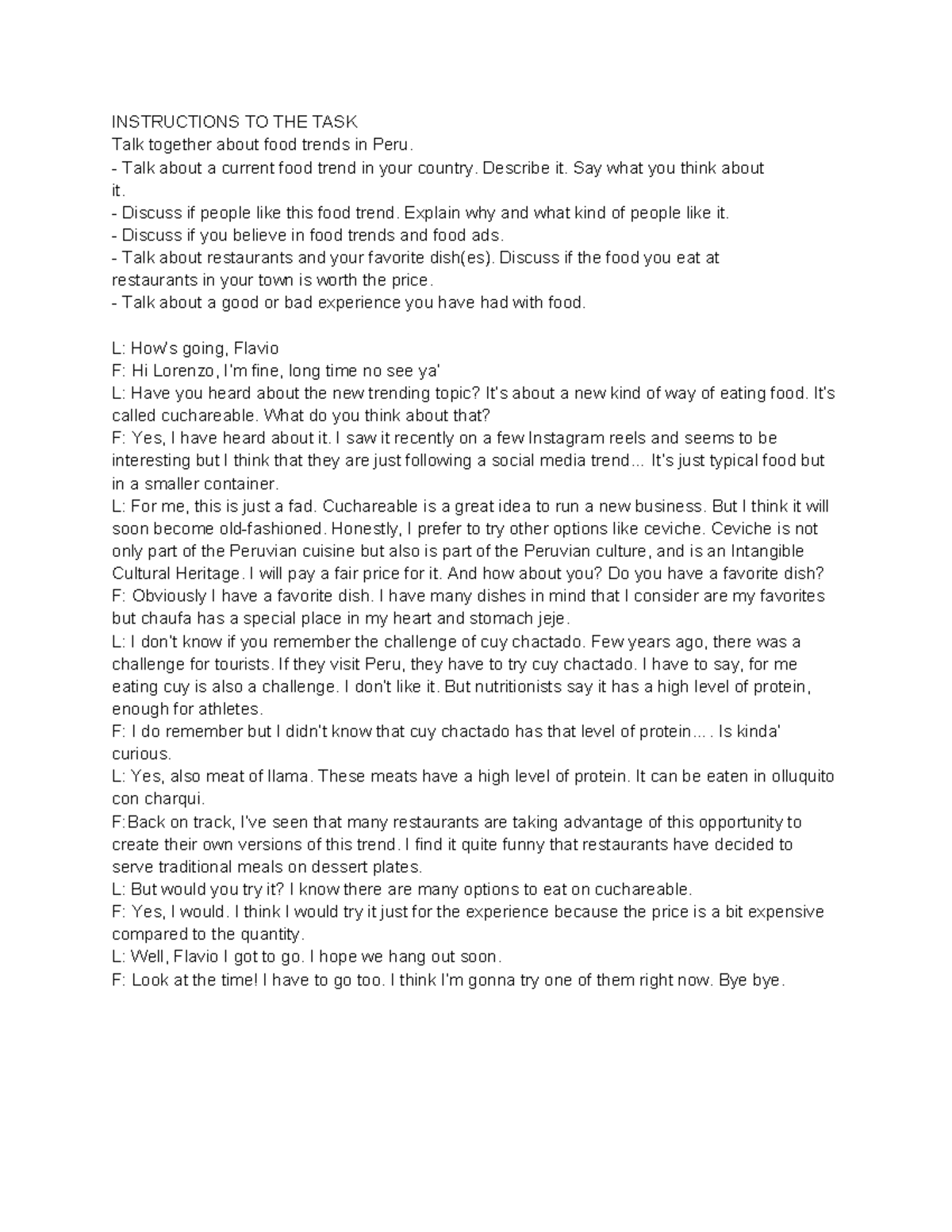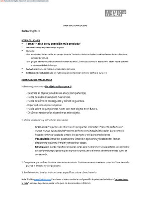 Midterm oral task - evaluacion parcial - INSTRUCTIONS TO THE TASK Talk ...