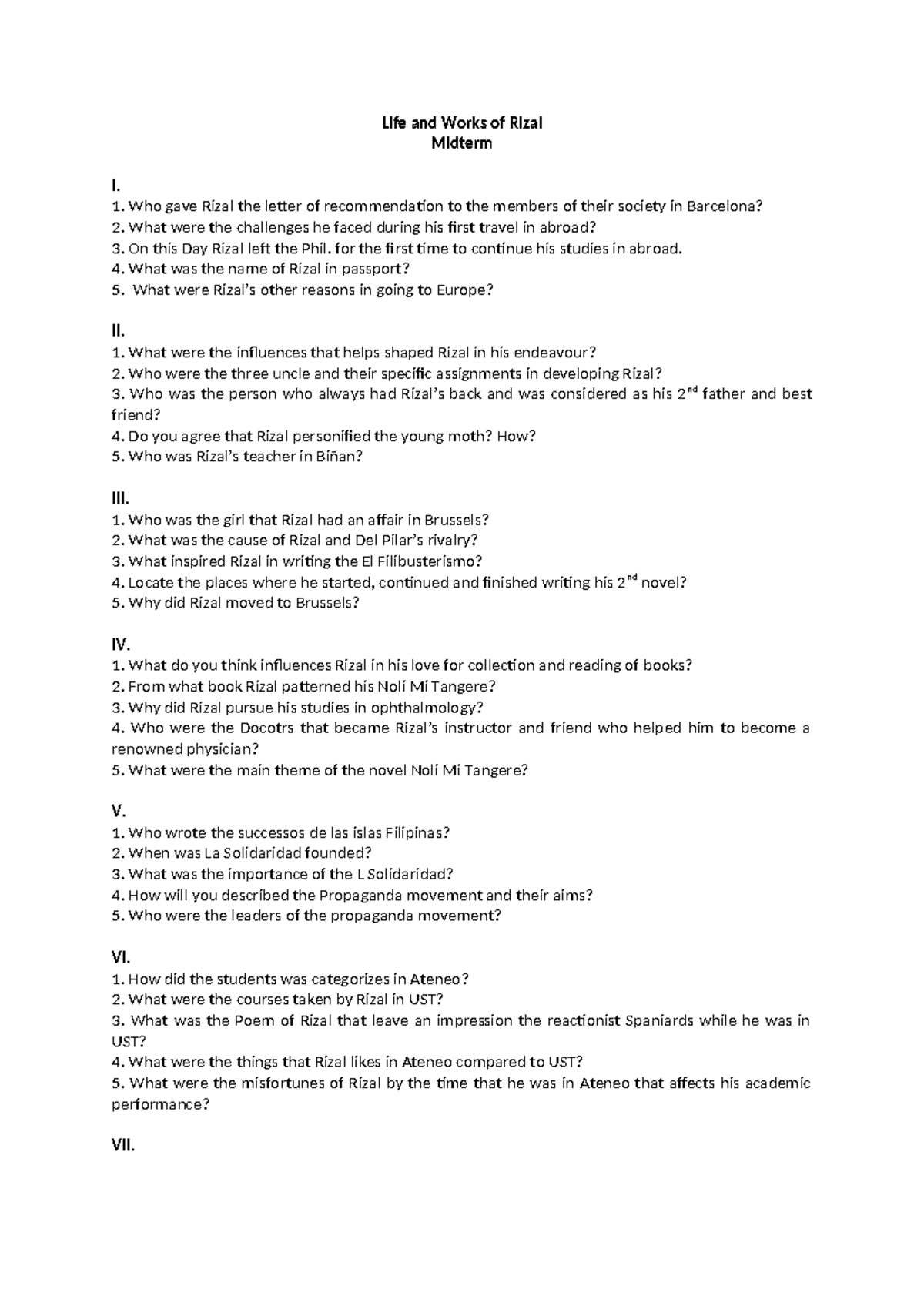 Life and Works of Rizal midterm oral exam - Life and Works of Rizal ...
