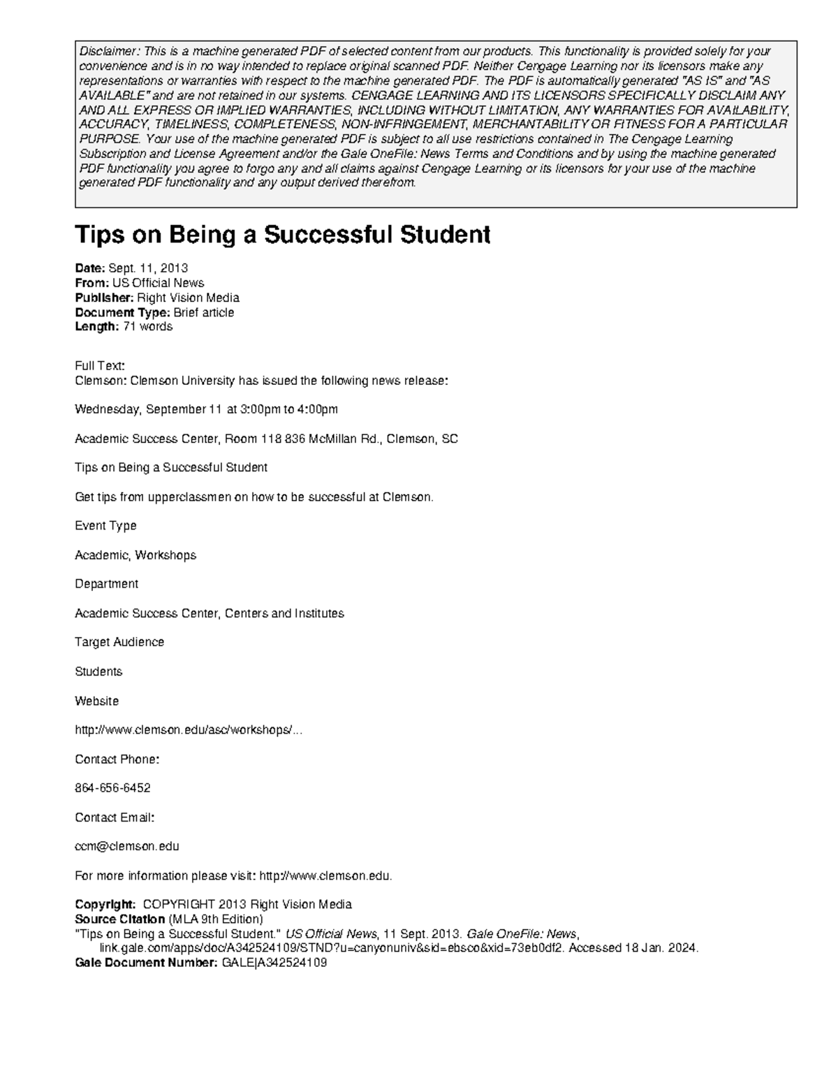 Tips on Being a Successful Stu - Disclaimer: This is a machine ...
