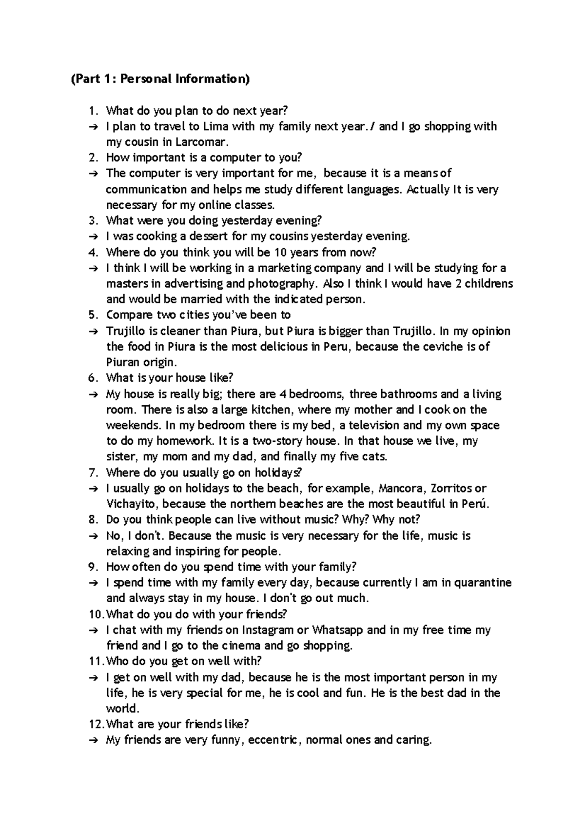 Midterm Oral Exam - (Part 1: Personal Information) What do you plan to ...