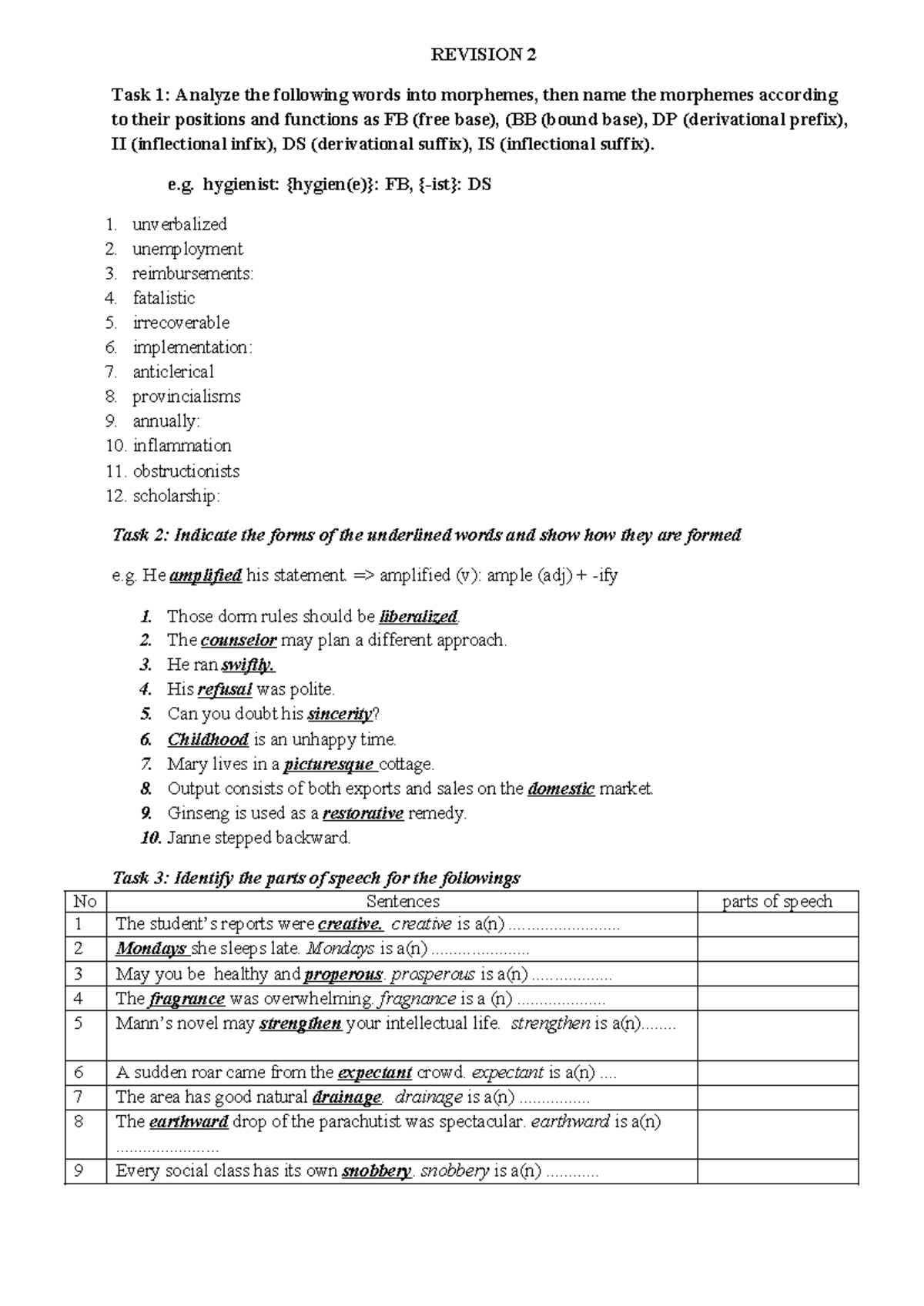 Midterm Review: Morpheme Analysis and Word Formation Tasks - Studocu