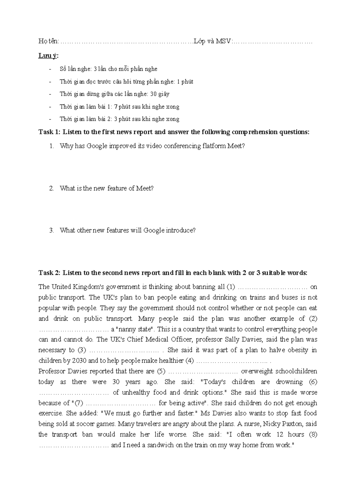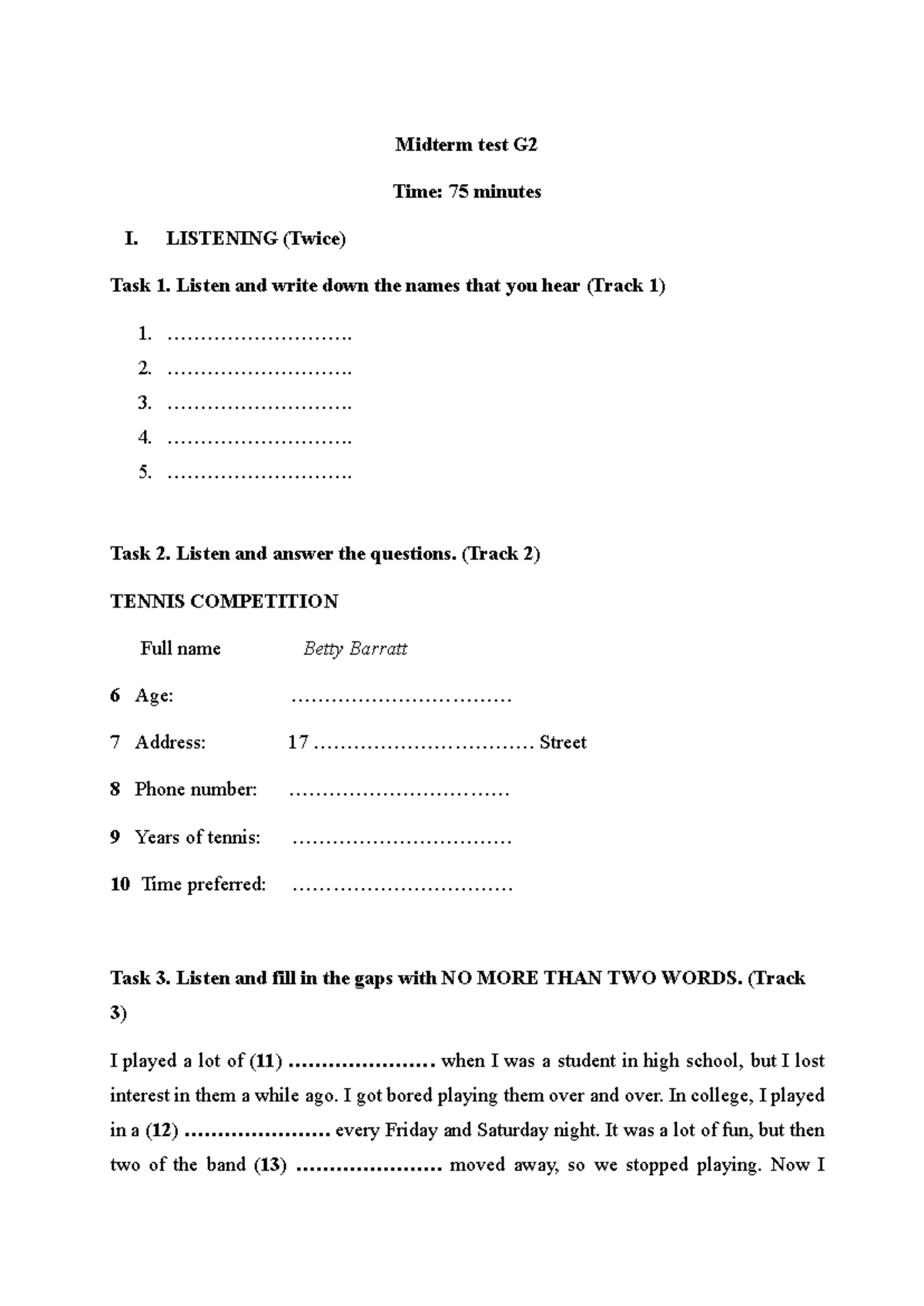 Midterm Test G2: Listening and Reading Comprehension Tasks - Studocu