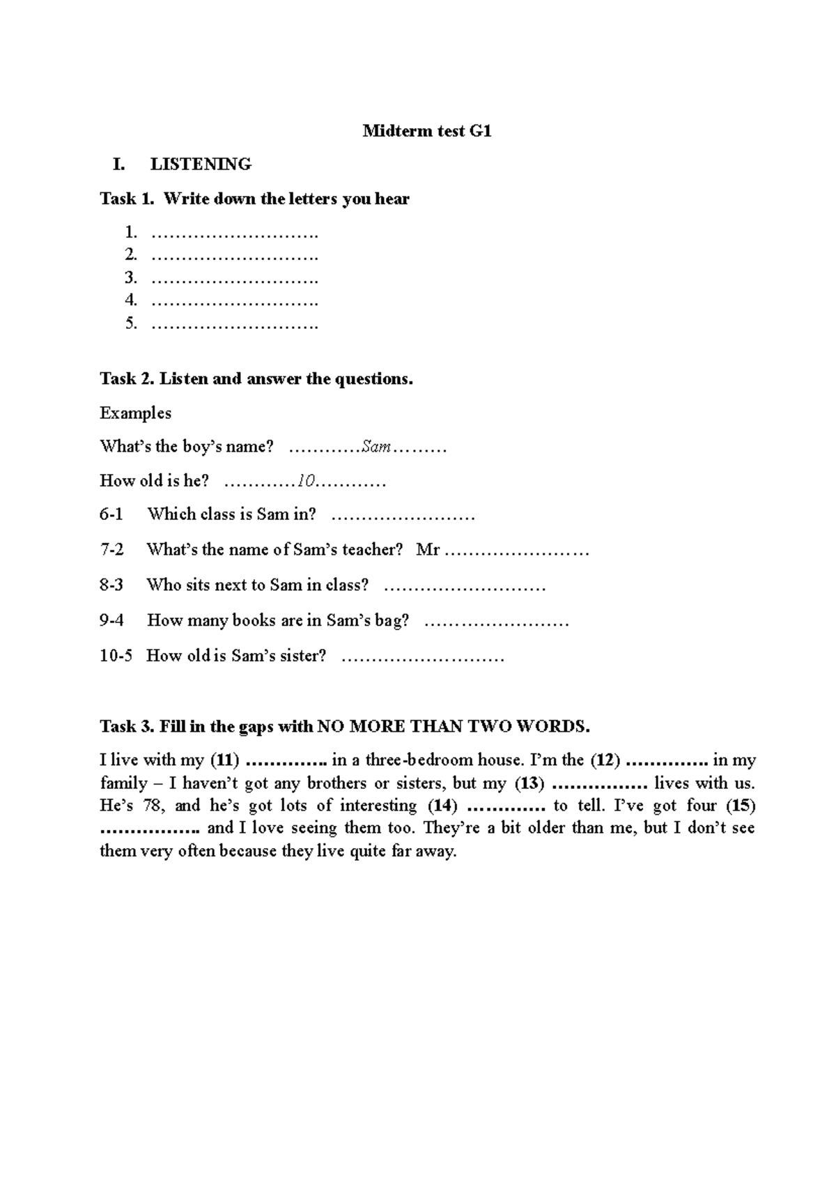 Midterm Test G1 - Listening & Vocabulary Tasks - Studocu