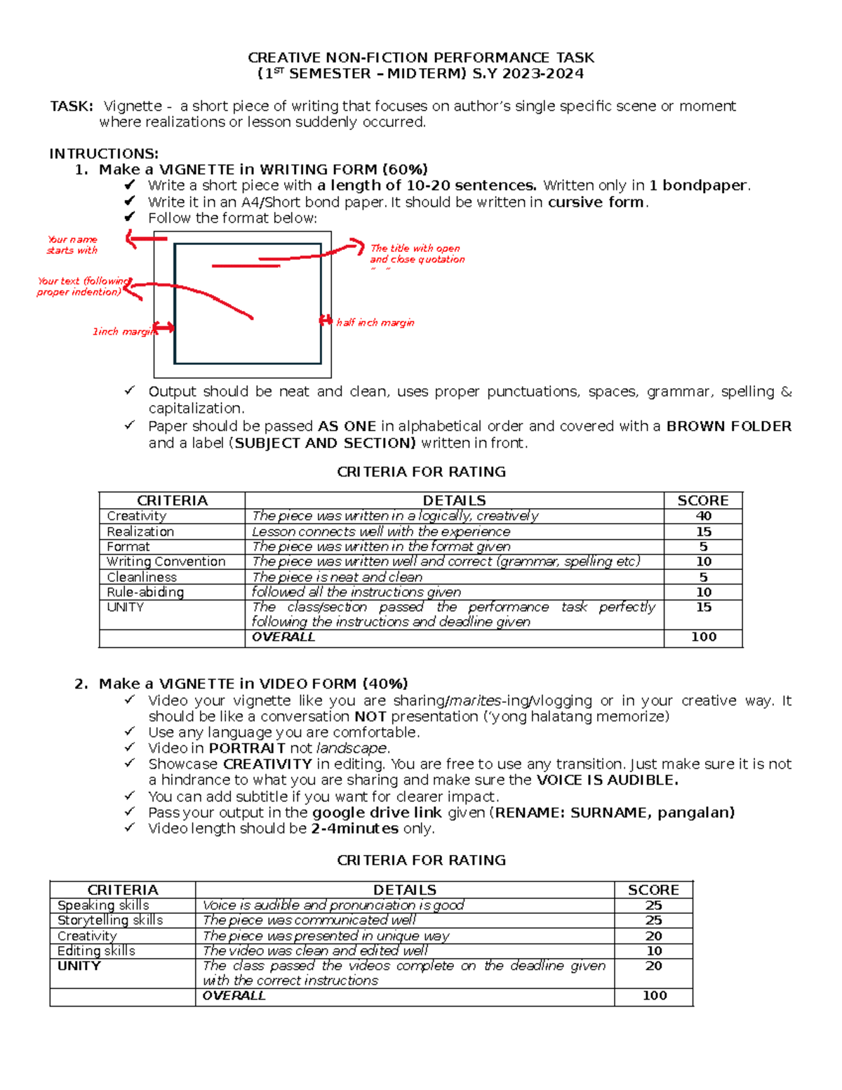 CREATIVE PERFORMANCE TASK (1ST SEM MIDTERM) VIGNETTE GUIDELINES - Studocu