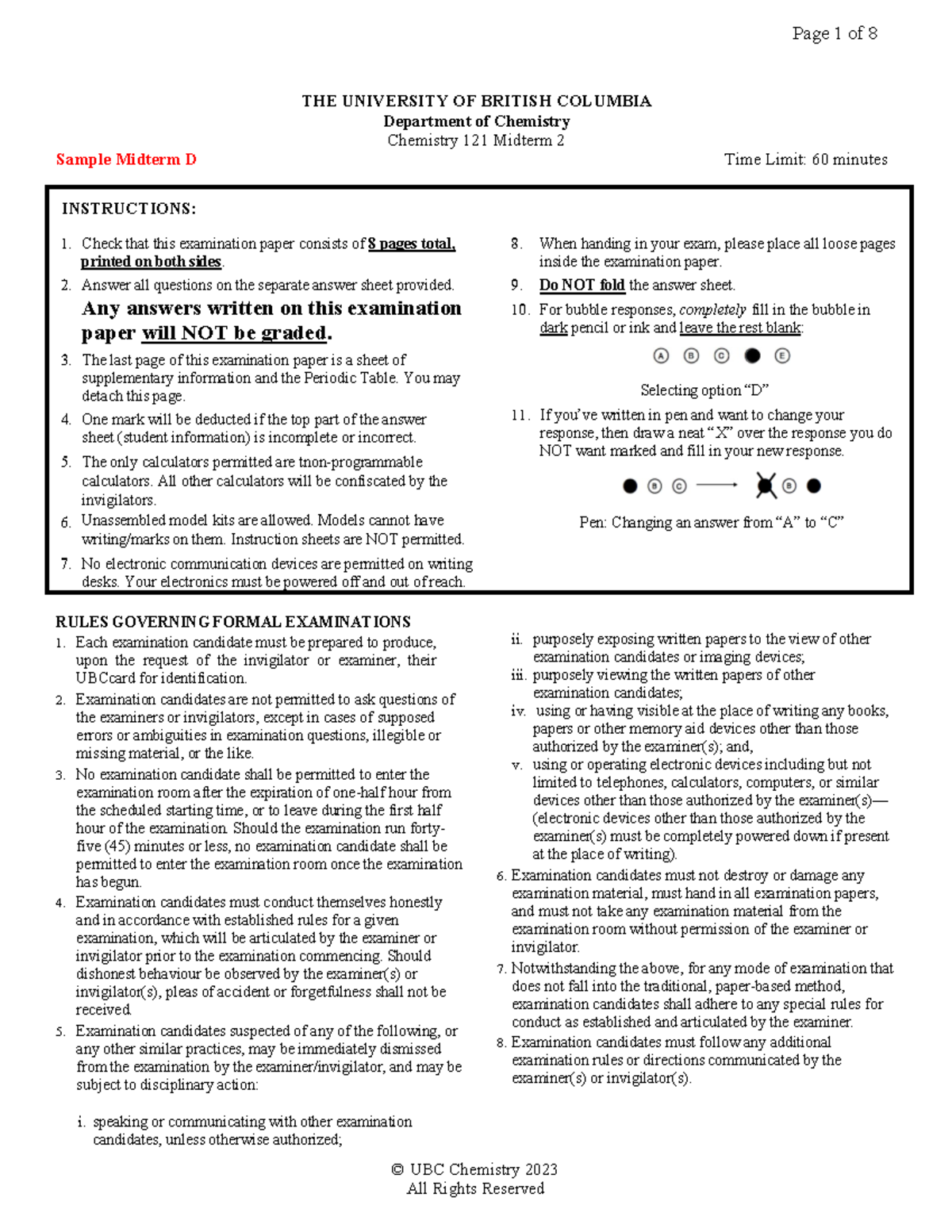 Sample Midterm D - CHEM121 Exam Instructions and Tasks - Studocu