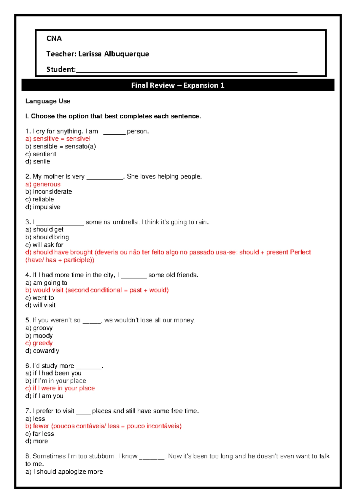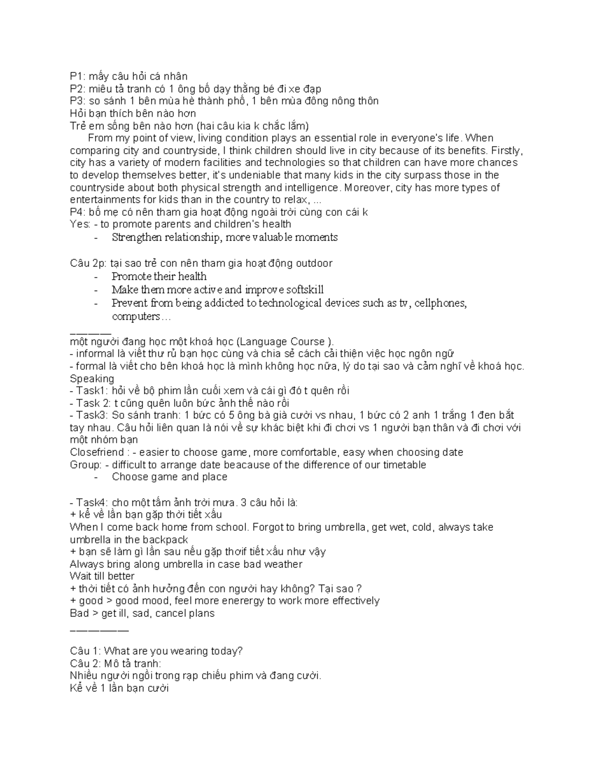 CNA Expansion 2 - Final Oral Test Guide for Pre-Advanced 2 - Studocu